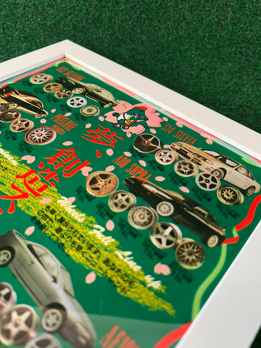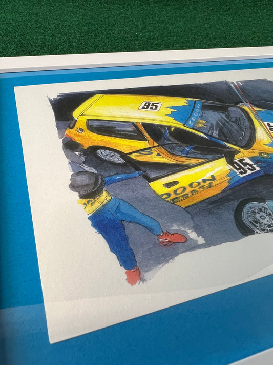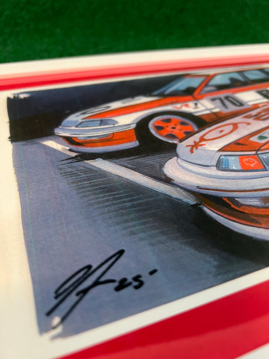 SPOON SPORTS Honda S2000 Racecar Rear Bumper Framed, Hand Drawn, Watercolor Painted & Signed Print