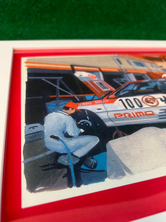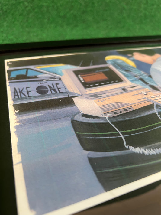 Idemitsu #100 Honda Civic EG6 Racecar in Pit Hand Drawn, Watercolor Painted & Signed Print