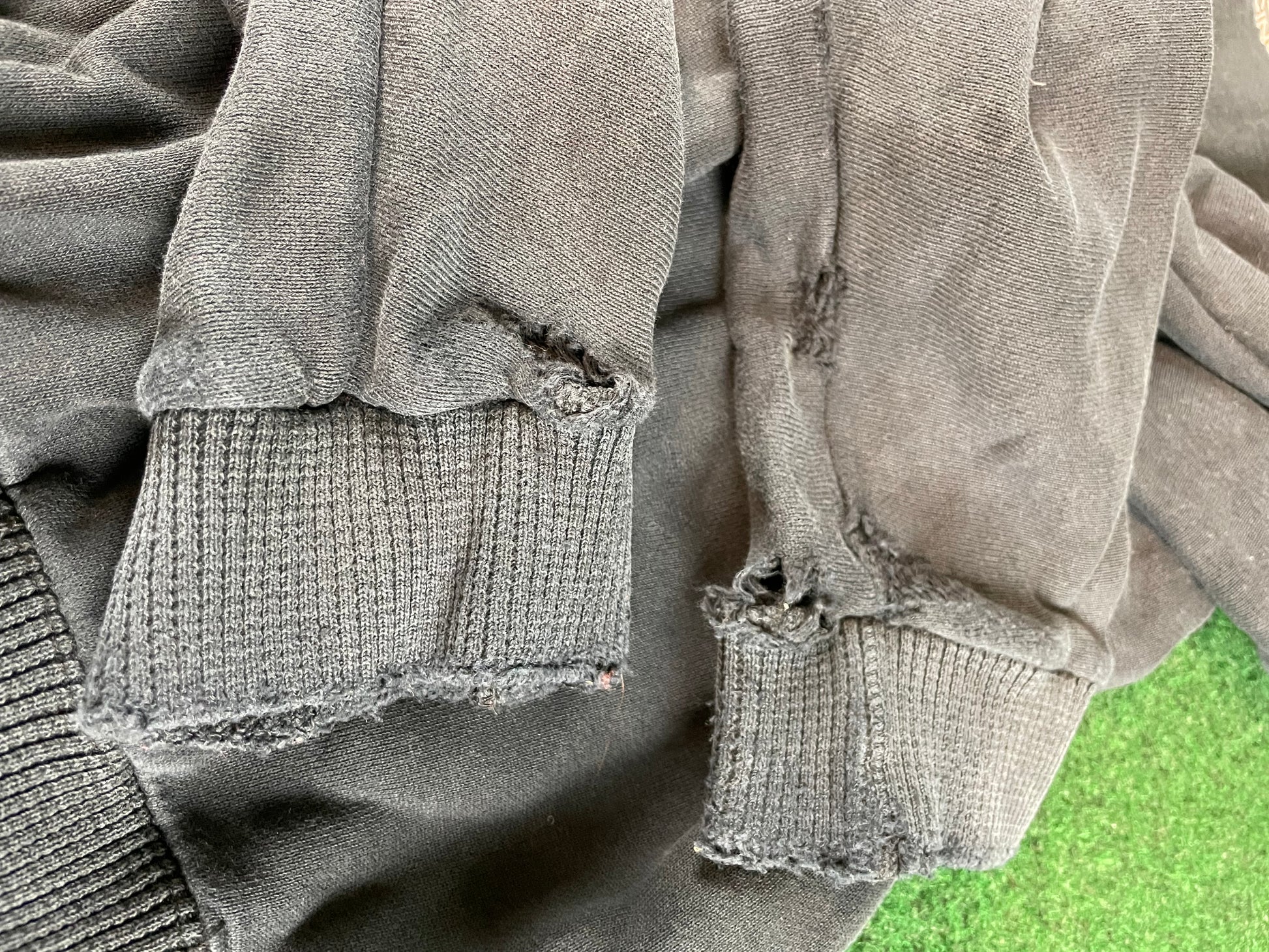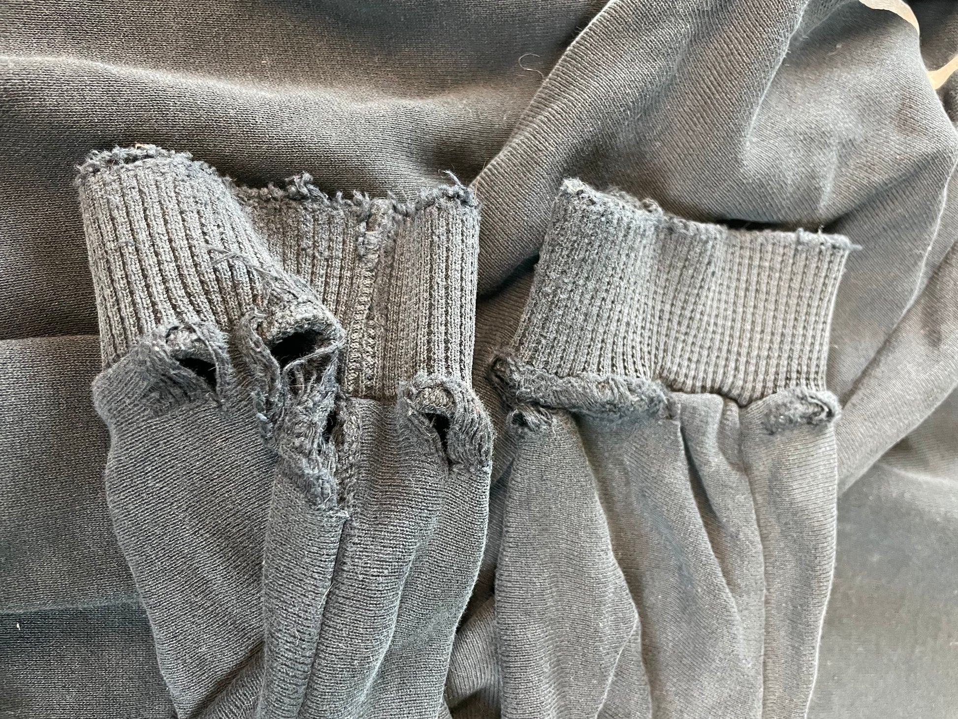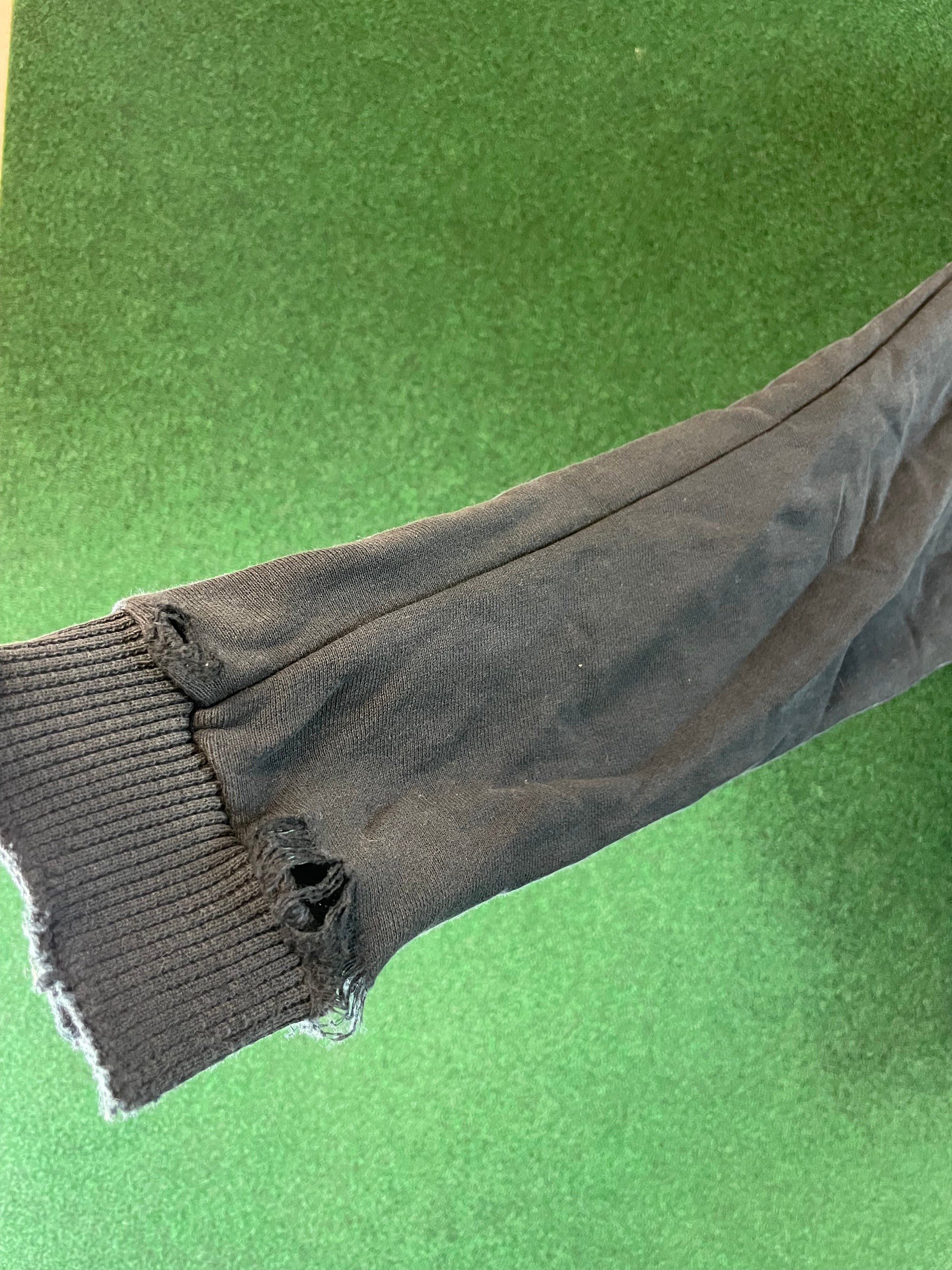 There are rips and holes near the end of each arm.